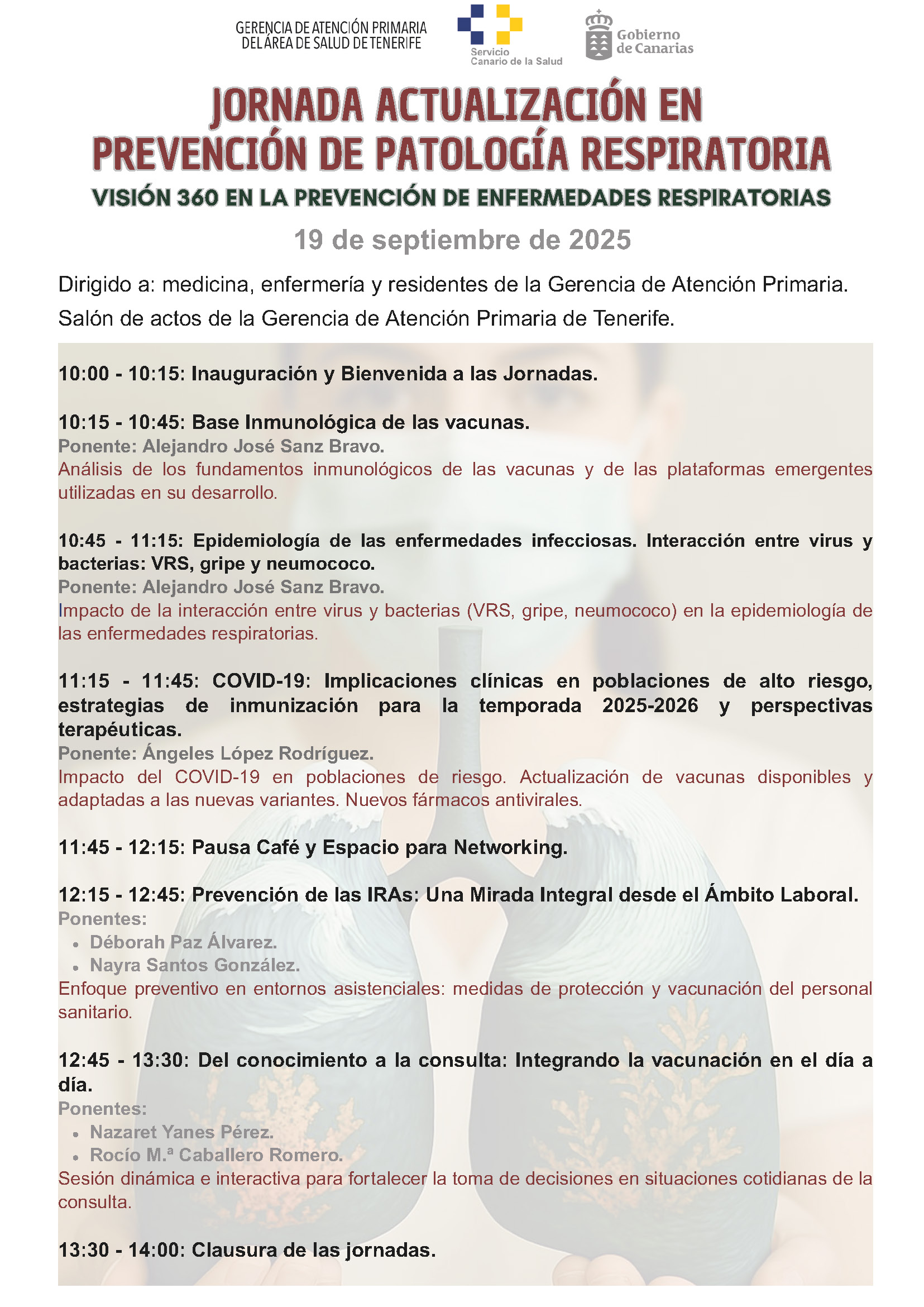 JORNADA ACTUALIZACIÓN EN PREVENCIÓN DE PATOLOGÍA RESPIRATORIA: VISIÓN 360 EN LA PREVENCIÓN DE ENFERMEDADES RESPIRATORIAS