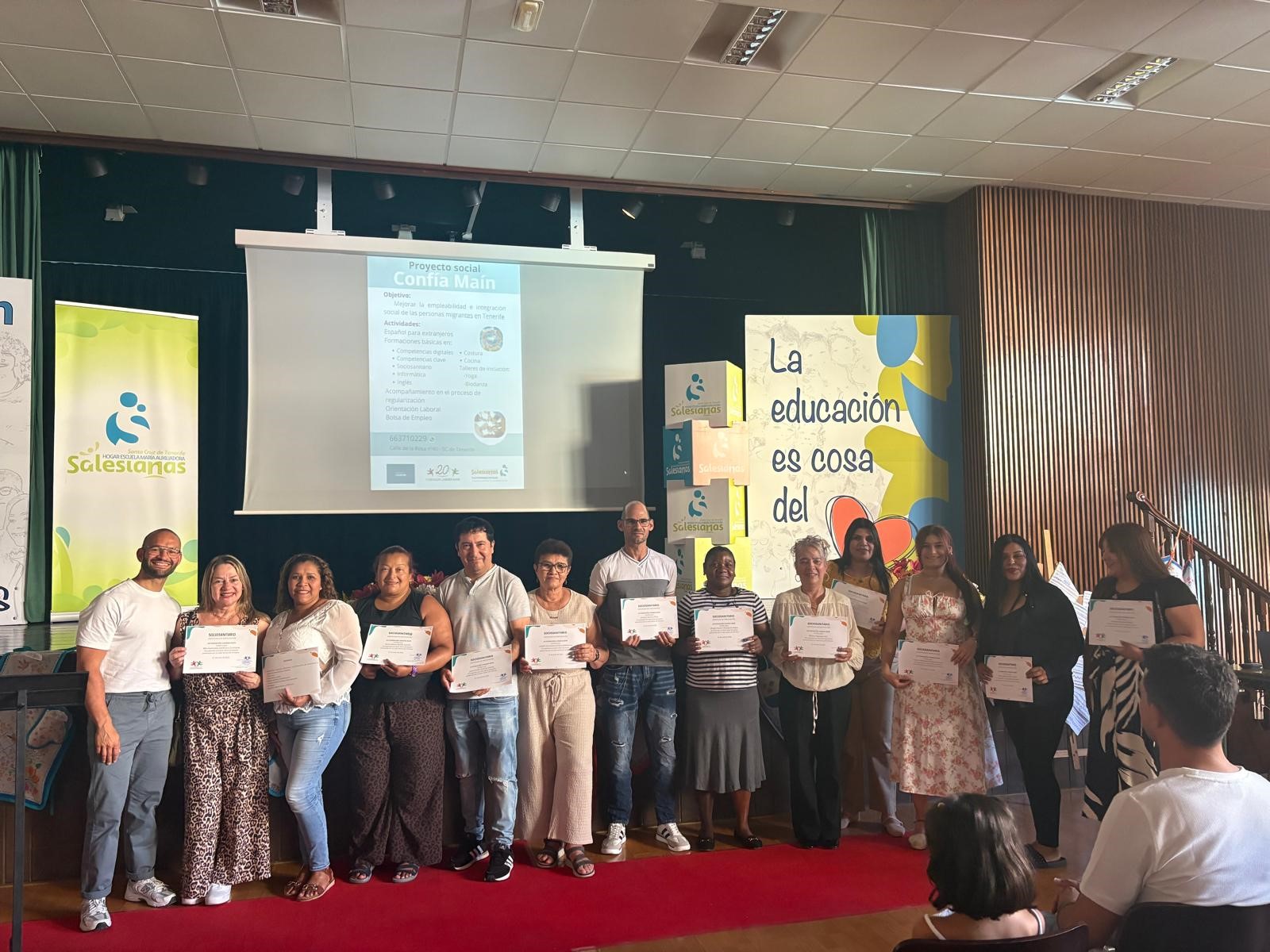 El pasado 20 de junio, la ONG Solidaridad Enfermera de Tenerife participó activamente en el acto de entrega de diplomas organizado por la Fundación Canaria MAIN, dentro del marco del Proyecto Confía MAIN, una iniciativa dirigida a mejorar la empleabilidad e integración social de la población migrante en situación de vulnerabilidad en Tenerife.