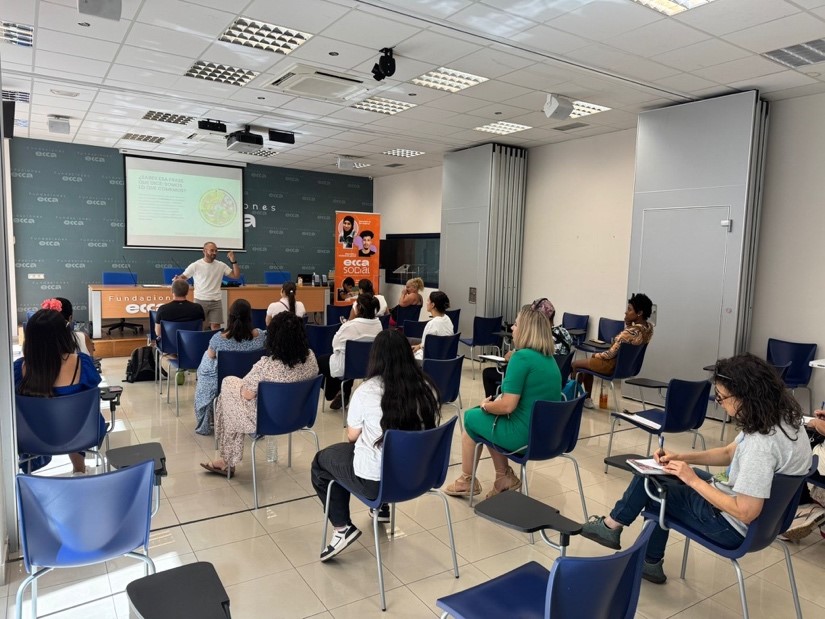Más de 20 personas, entre personas migrantes y trabajadores y trabajadoras de la Fundación ECCA, participaron activamente en esta formación titulada “Nutrición y Sueño”. Durante la sesión, que se extendió por hora y media y se desarrolló en un ambiente cercano y participativo, surgieron dudas, reflexiones y preguntas en cada tema tratado, lo que generó un valioso espacio de diálogo y concienciación.